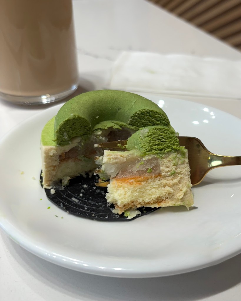 The Matcha Jasmine Yuzu cake, however, was a revelation. The yuzu flavour hit immediately, followed by a strong jasmine base that created this sophisticated flavour profile I wasn’t expecting. But here’s the genius part – there’s an ice-like frosting between the cake layers that keeps everything perfectly chilled while amplifying the yuzu’s tartness. The matcha cream on top provides a subtle earthy finish that ties everything together beautifully.