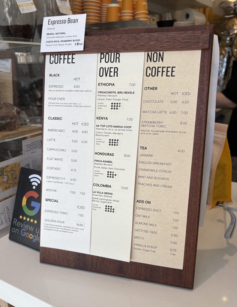When we asked about the differences (because let’s be honest, most of us don’t instinctively know the flavour profiles of different coffee origins unless we are really invested into types of coffee beans), they took time to explain clearly and knowledgeably. This wasn’t coffee people making you feel dumb, it was genuine expertise delivered in an approachable way.
